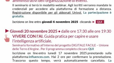 Ecco i prossimi corsi Univol di novembre-dicembre 2025: