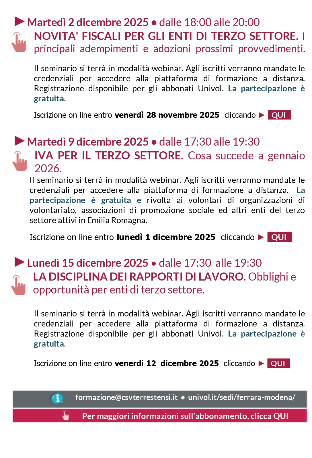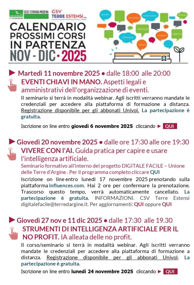 Ecco i prossimi corsi Univol di novembre-dicembre 2025: