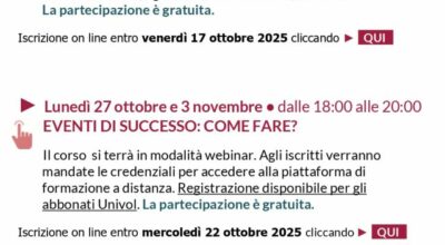 Ecco i prossimi corsi Univol di ottobre 2025: