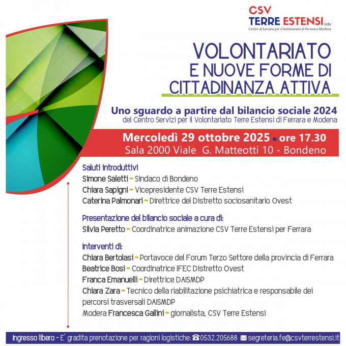 Volontariato e nuove forme di cittadinanza attiva: se ne parla a partire dal bilancio sociale 2024 del CSV Terre Estensi